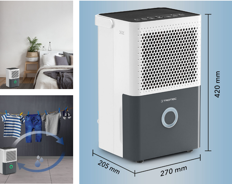 Бытовой осушитель Trotec TTK 33 E – ваш компактный помощник в борьбе с влажностью. Прибор эффективно устраняет излишки влаги, предотвращая появление плесени и грибка, что способствует созданию здорового микроклимата в помещении. Он собирает до 14 литров влаги в сутки, что достаточно для снижения избыточной влажности в помещениях до 15 м².