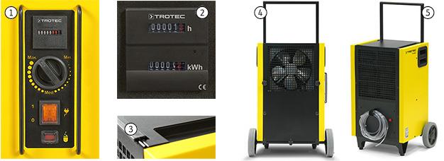 Осушитель воздуха Trotec TTK 655 S изготовлен и укомплектован для работы на больших объектах. Способность извлечь более чем 150 литров конденсата и влаги с воздуха всего лишь за день поможет эффективно нормализировать микроклимат на промышленности и в подобных помещениях. Мощная работа – это не единственное достоинство этого прибора. Во-первых, Тротек популярен своим немецким качеством, а данная модель еще и имеет эргономичный и лаконичный дизайн. Во-вторых, любителям пространства понравится практичность осушителя, его небольшие габариты, мобильность, а так же удобство при транспортировке или хранении. Дело в том, что на корпусе прибора вмонтированы специальные пазы, которые могут скреплять между собой равные по размеру осушители этой модели. В-третьих, осушитель обладает функциями экономии энергии даже при высокой мощности, что не может не привлечь внимания.