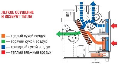 Пристрій обладнано системою, яка автоматично регулює співвідношення трьох повітряних потоків - повітря, що рециркулюється, що подається в приміщення і свіжого. Модель оснащена системою теплової утилізації. Корпус Delta 4 захищений від корозії.