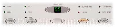 • LED-дисплей, який легко налаштовується, має індикацію рівня вологості і є інтуїтивно зрозумілим для користувача. Зручно розташовані кнопки налаштувань і індикатори сигналізації станів.