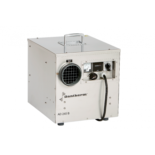 Осушувач Dantherm AD 240B має переваги над осушувачами конденсаційного типу, коли мова йде про підтримку рівня вологості при температурах нижче + 10 ° C. Використовуваний адсорбент - силікагель. Корпус осушувача Dantherm AD 240B вироблений з гарячеоцинкованої сталі. Має таймер часу роботи осушувача.