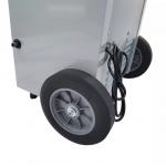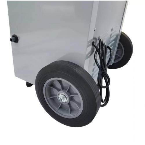 У осушувача зверху є надійна металева ручка та є великі гумові колеса для зручного переміщення. Є також бічні втоплені ручки.