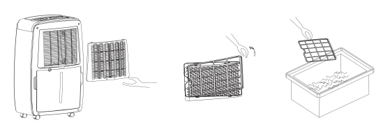 Пил, що накопичується у фільтрі, ускладнює прохідність повітря і, як наслідок, знижує продуктивність роботи осушувача. Фільтр легко виймається, так що його очищення не викличе жодних проблем.