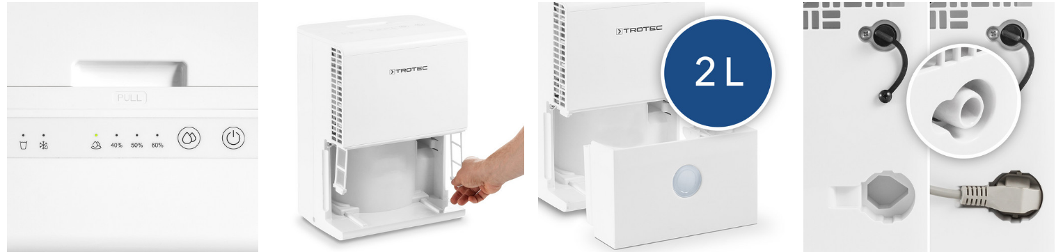 TROTEC TTK 28 E - супер компактний осушувач повітря з ідеальним дизайном, простий в експлуатації та вражаючий своїм набором функцій. Модель працює на натуральному холодоагенті R290, безпечному для довкілля.