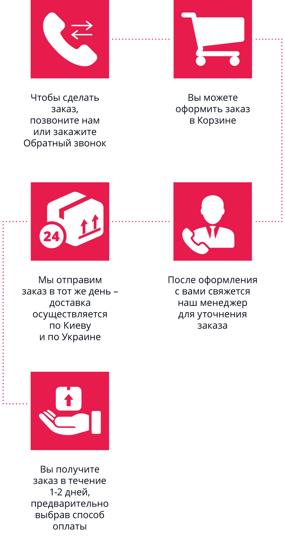 - По Украине: Отправка заказов в отделение логистической компании происходит в день заказа, если он оформлен до 13:00. Срок доставки грузоперевозчиком зависит от расстояния и составляет от 1 до 5 дней.